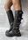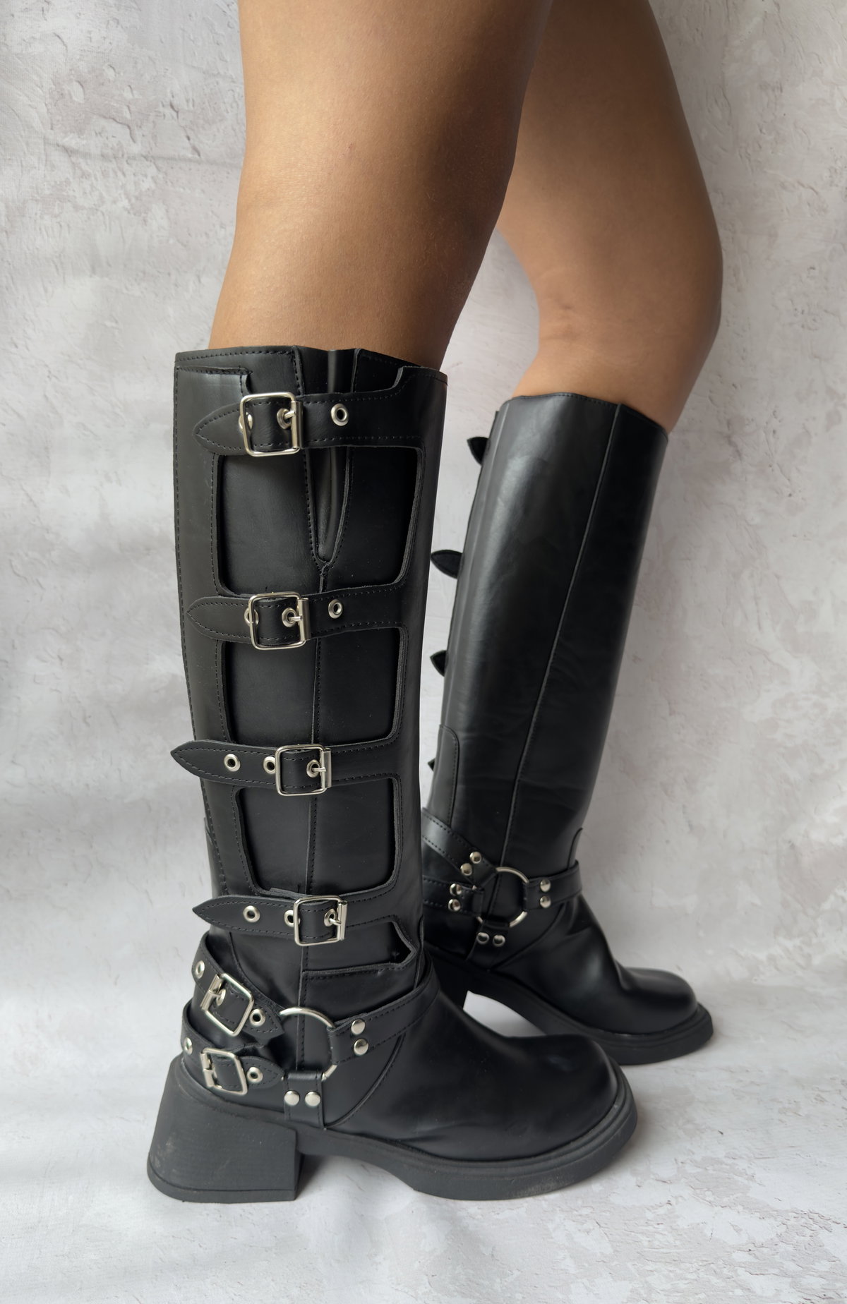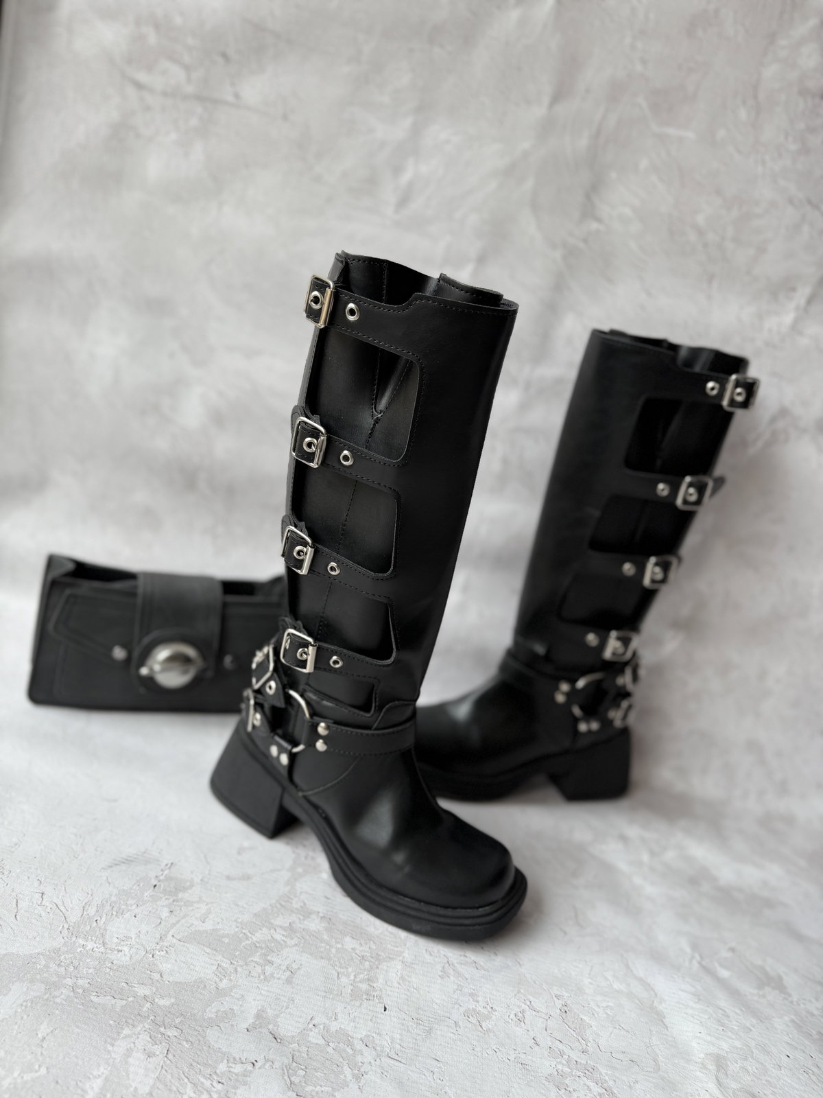 Botas largas con hebillas, realizandas en cuero ecológico P.U