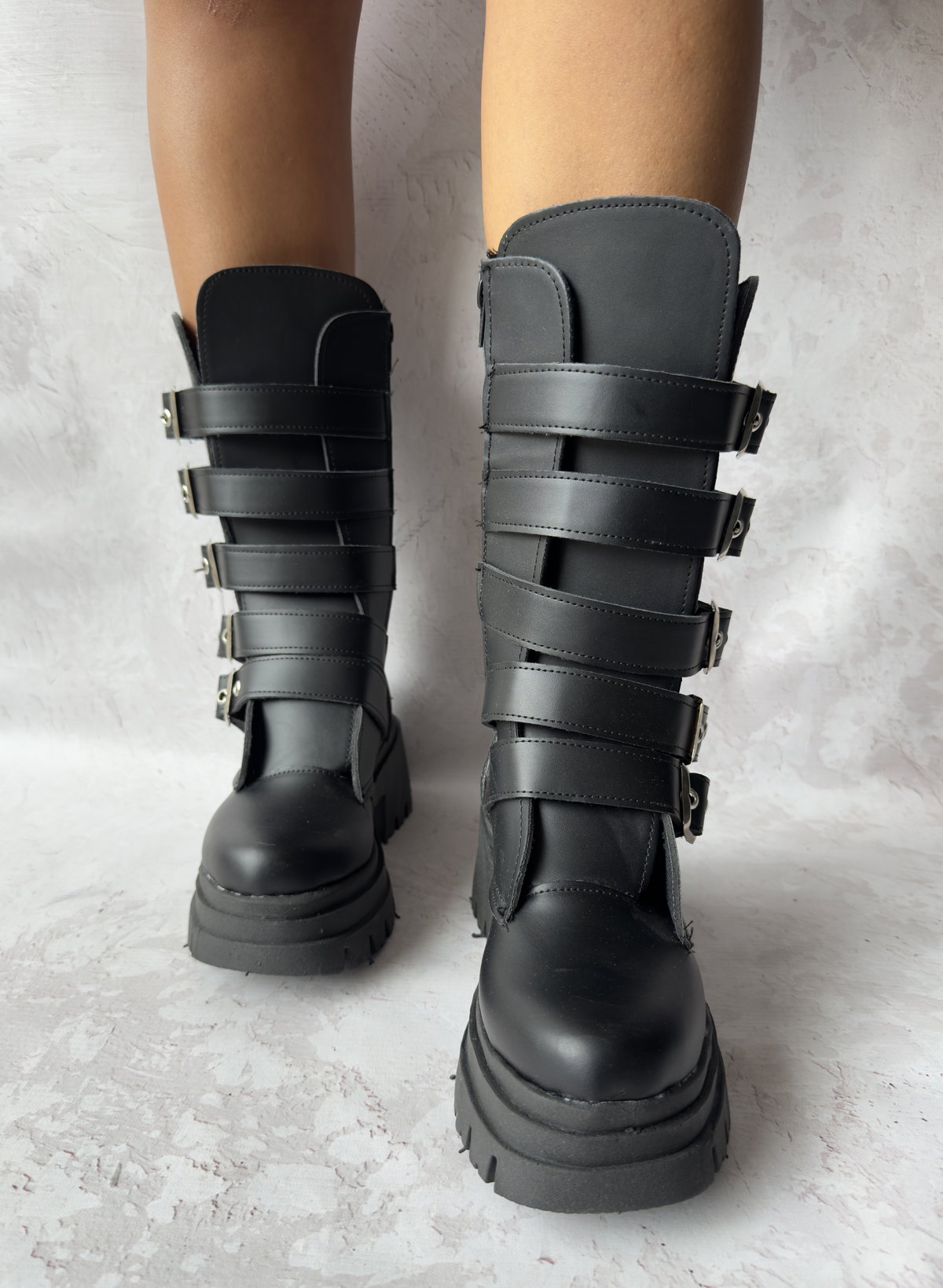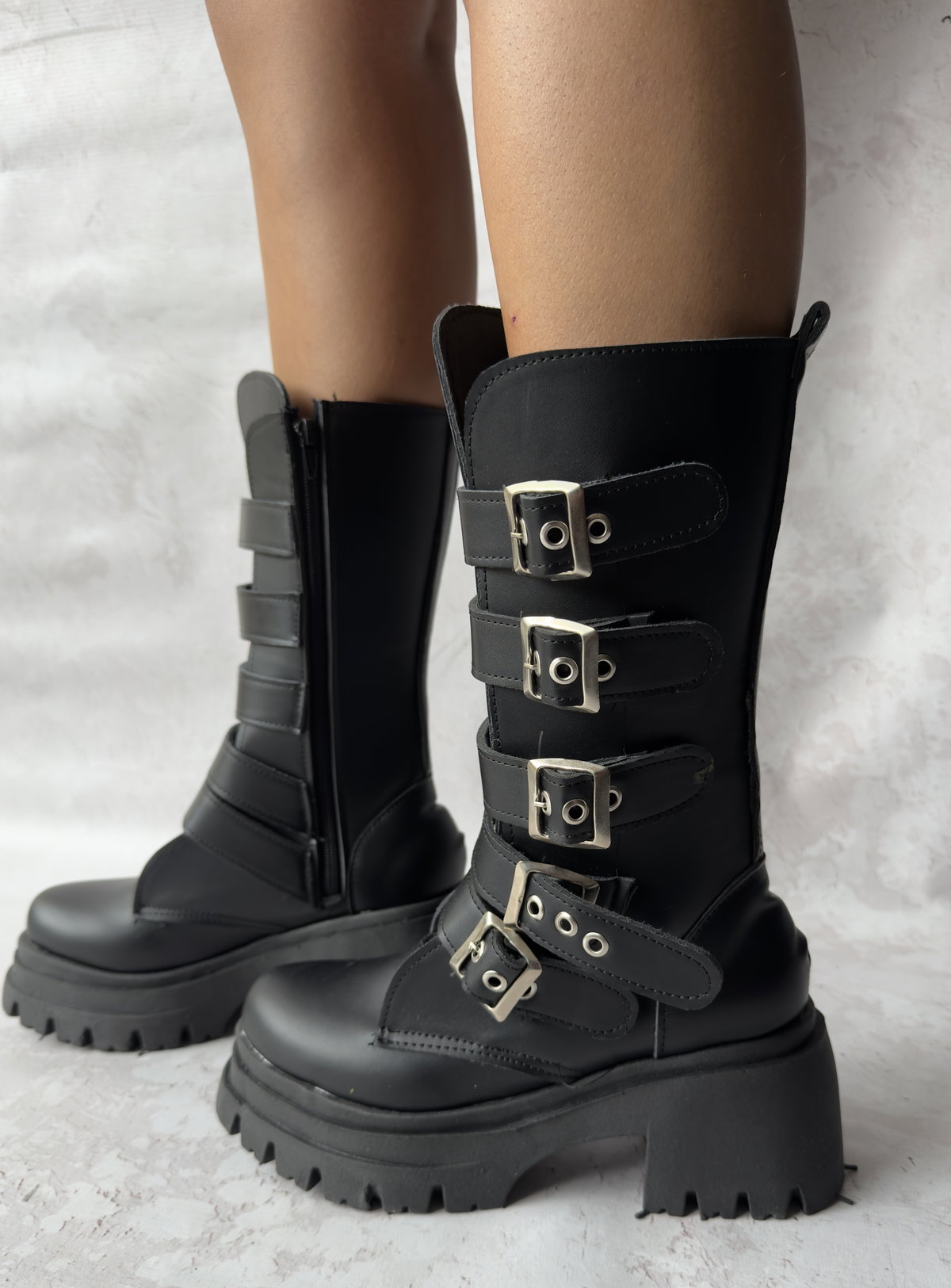 Botas caña media realizadas en cuero ecológico P.U. Taco de 9 cm y una plataforma de 4cm