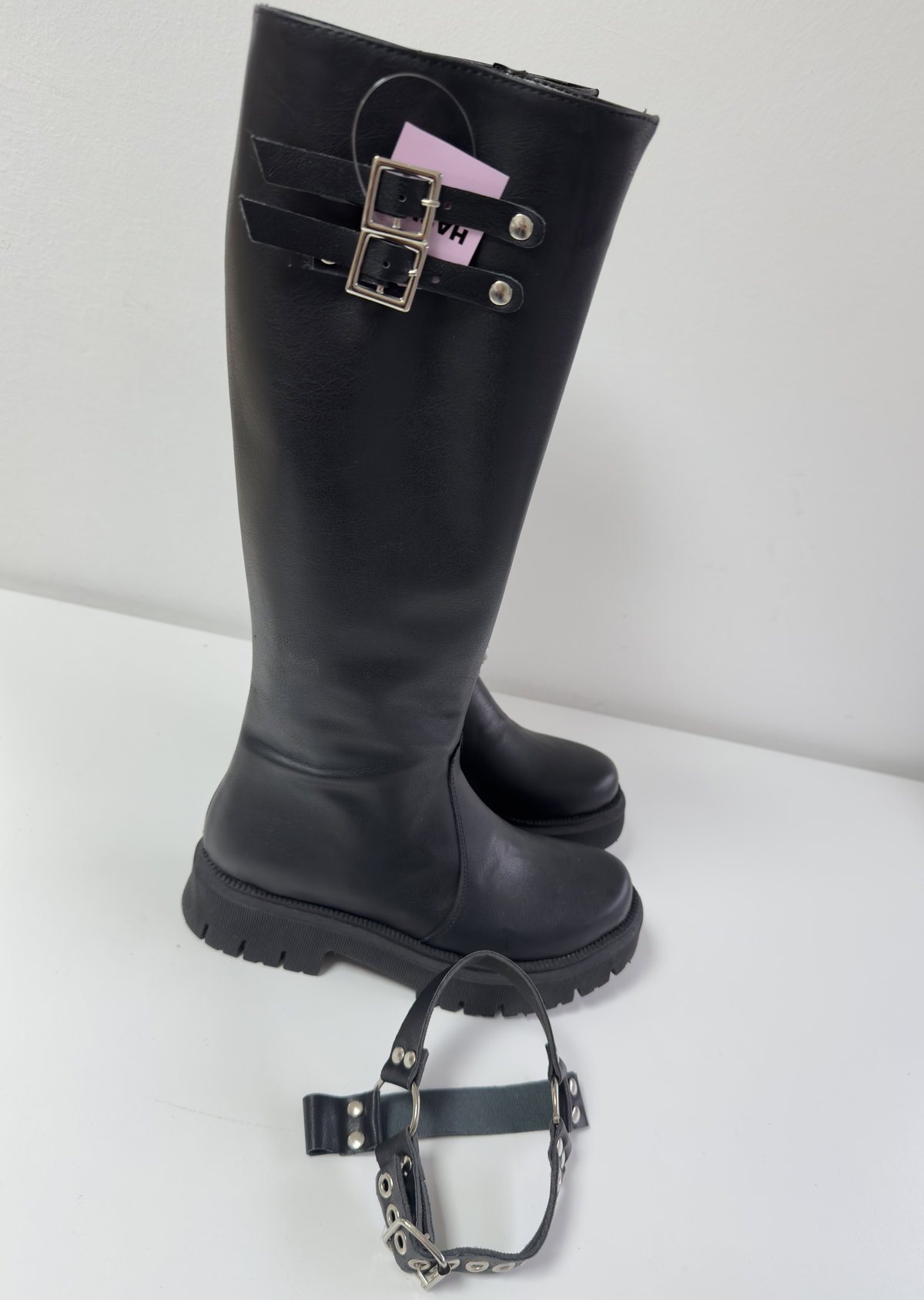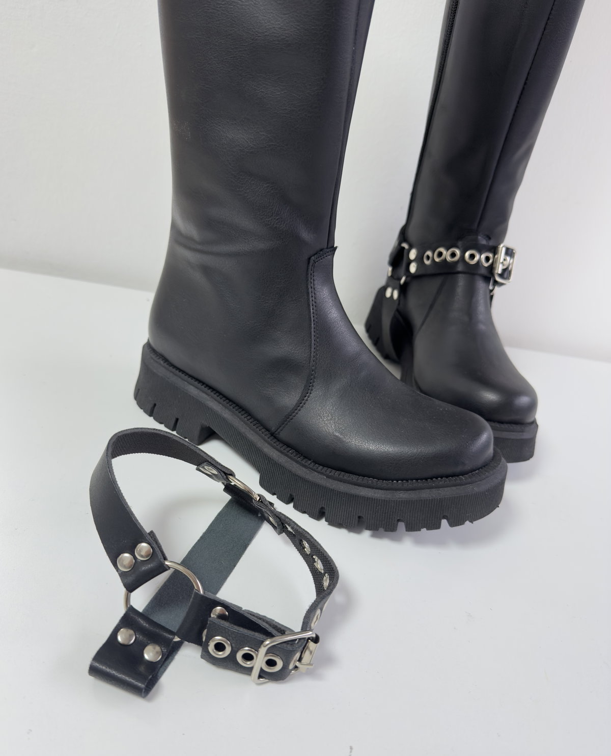 Bucaneras realizadas en cuero ecológico pu, accesorios desmontable, bucaneras 2 en 1