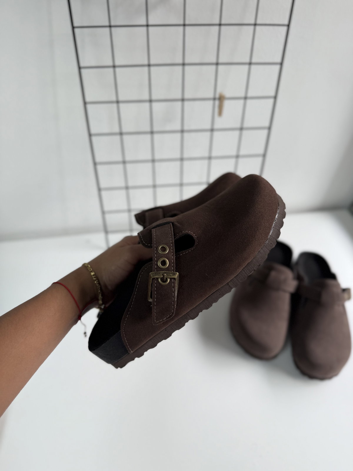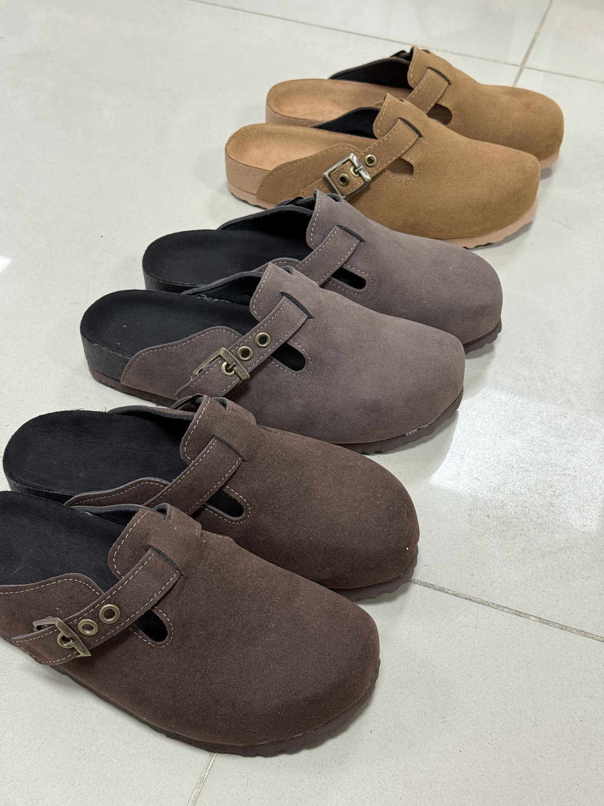 Zuecos gamuzados color tierra, realizados en base de eva súper livianos.