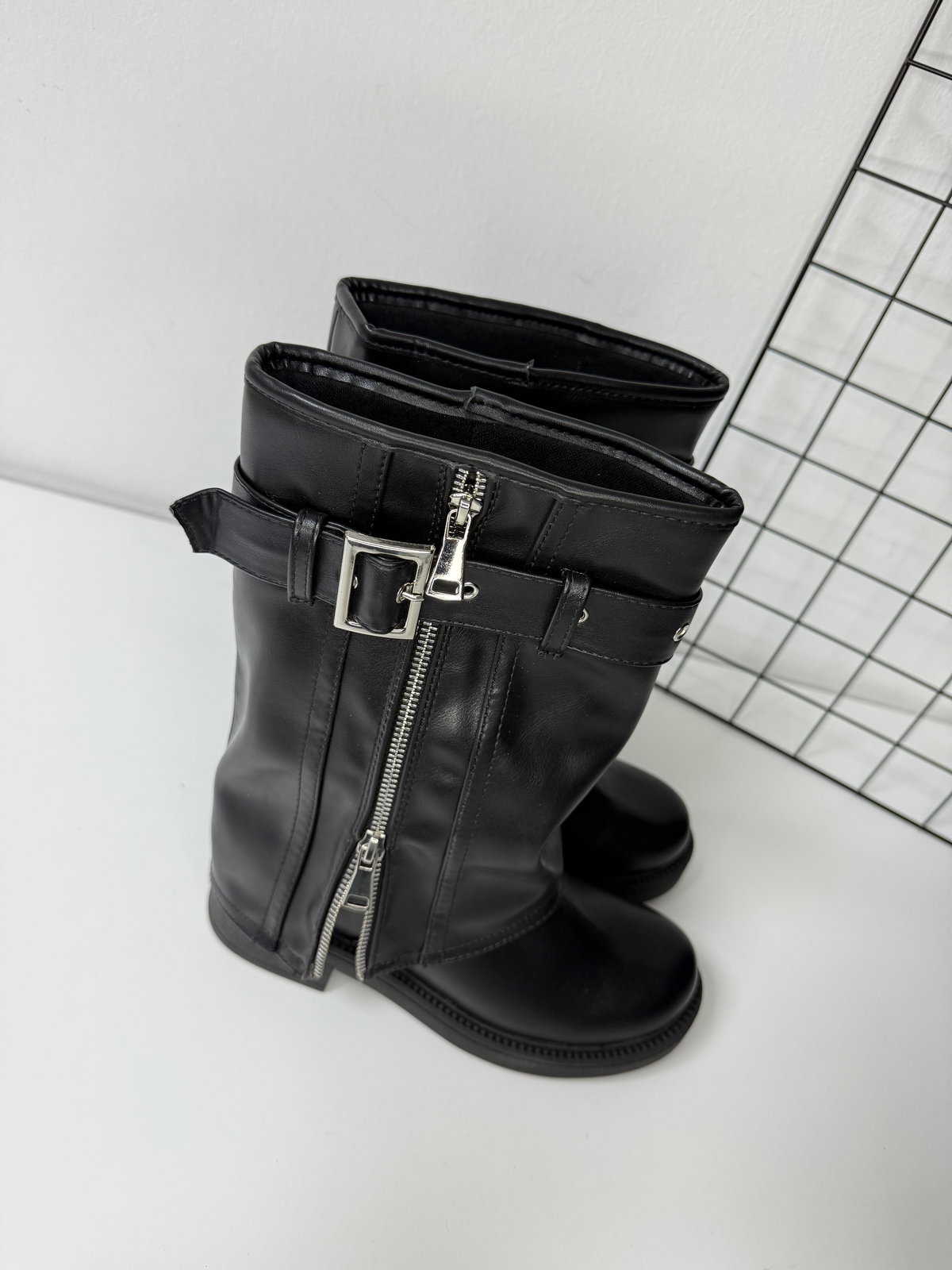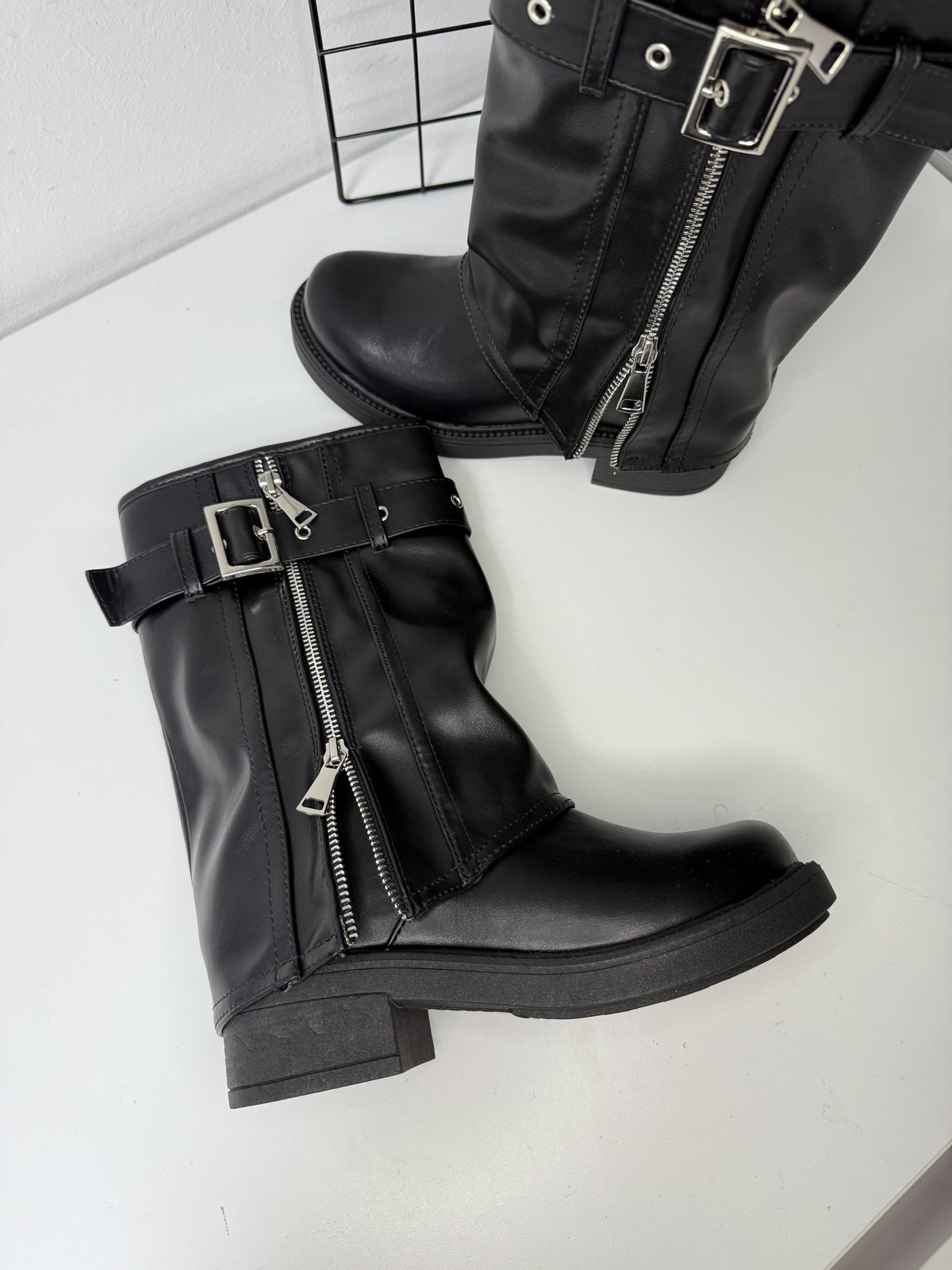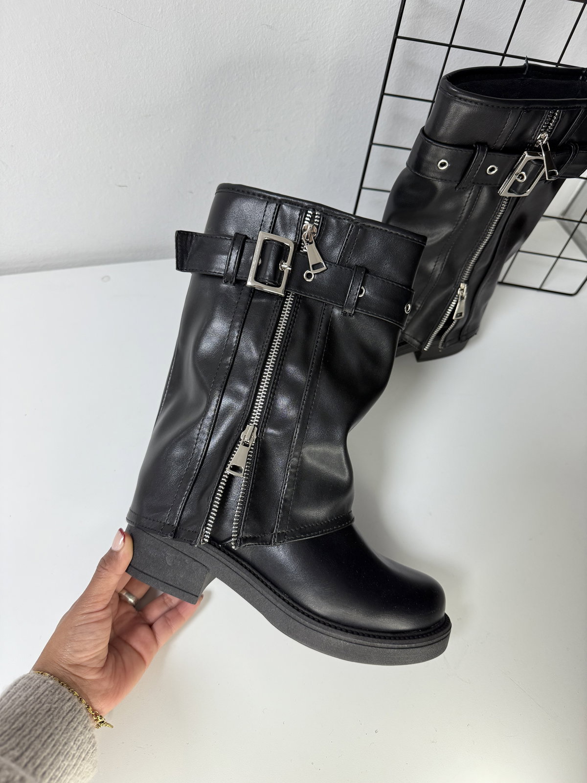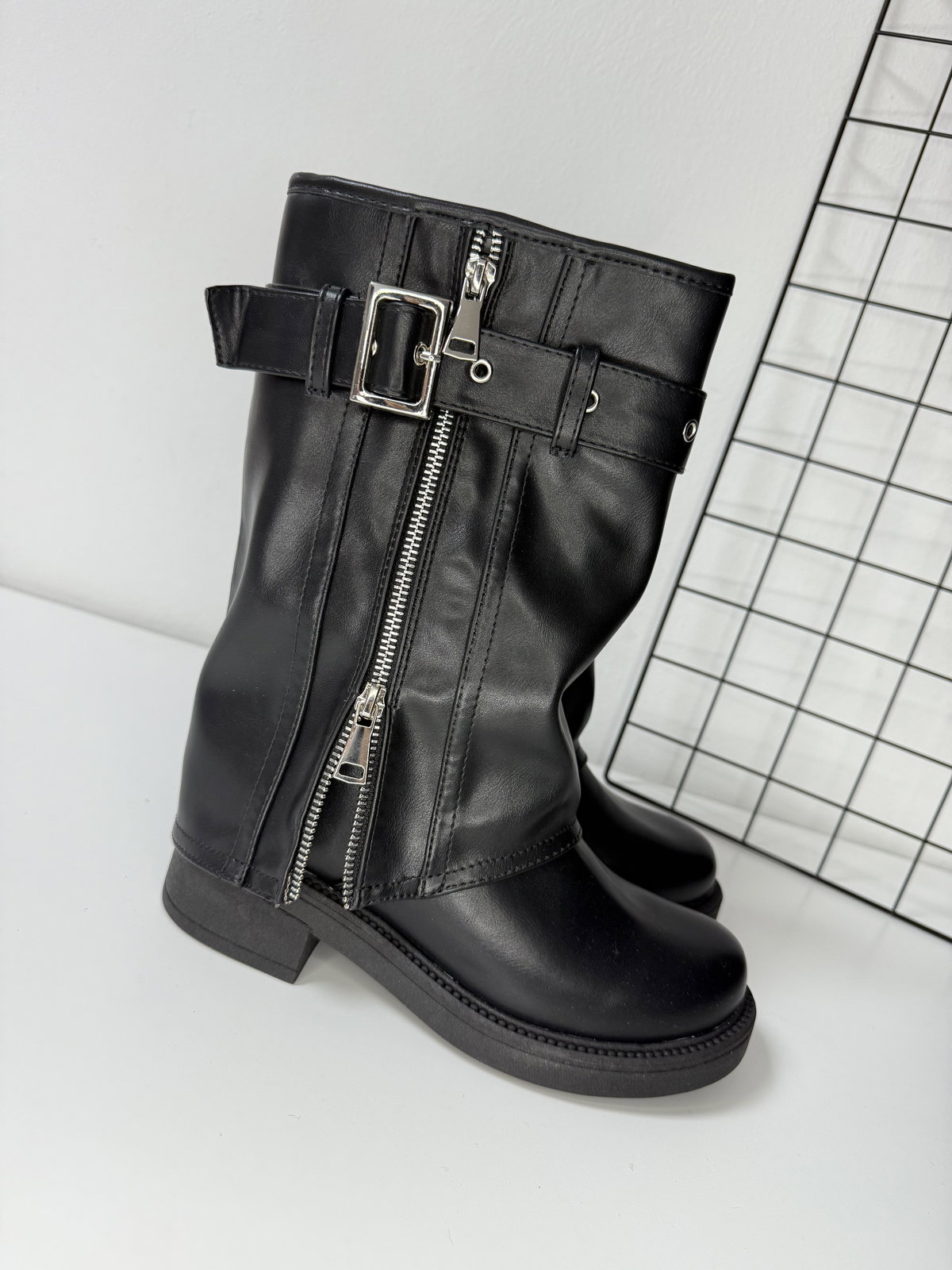 Botas de base baja y caña media,realizada en cuero ecológico pu