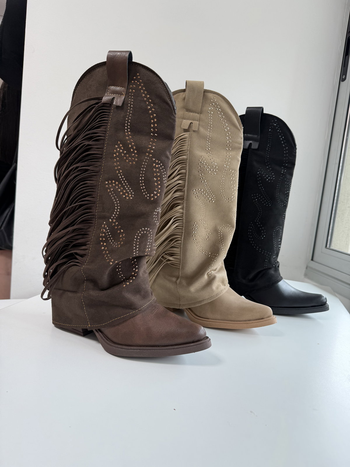 Texanas realizados en 2 texturas gamuza ecológica y cuero ecológico, diseño de stas.