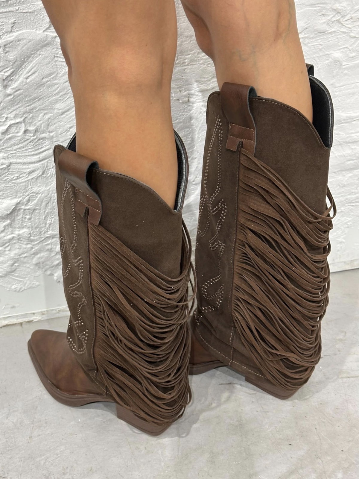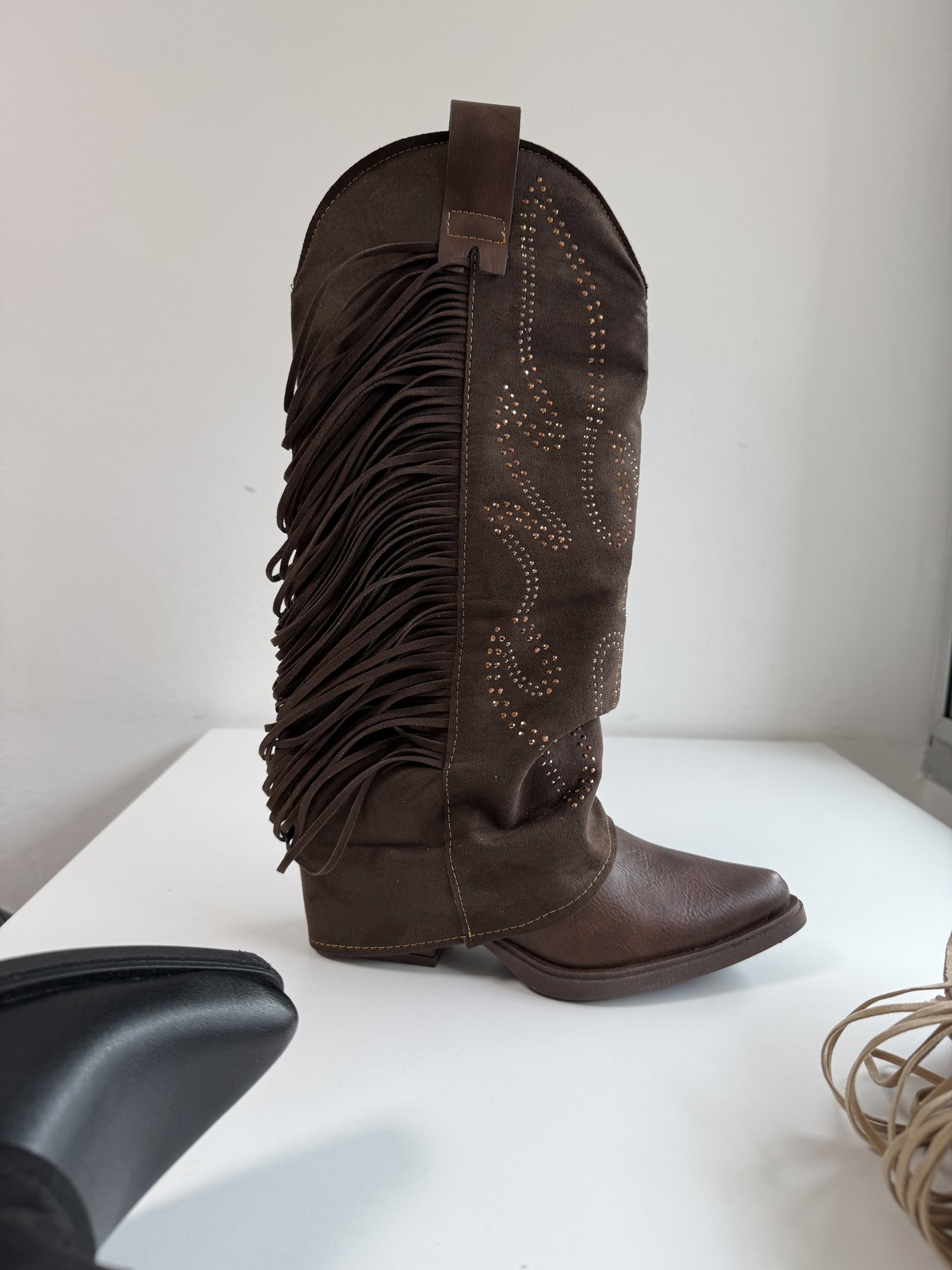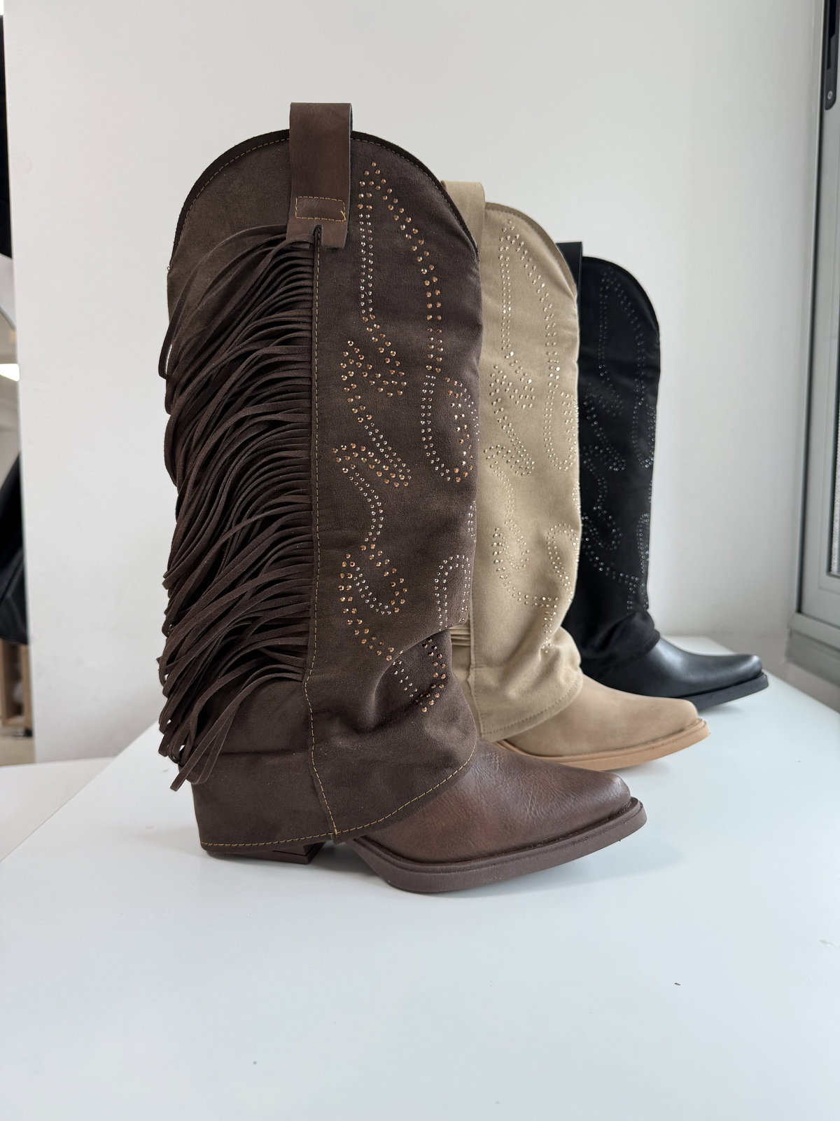 Texanas realizados en 2 texturas gamuza ecológica y cuero ecológico, diseño de stas.